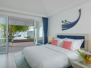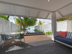 Bask in the afternoon sun on your private beach Cabana while your loved ones enjoy the private pool at the Sunset Beach Pool Villas of Villa Nautica Maldives.